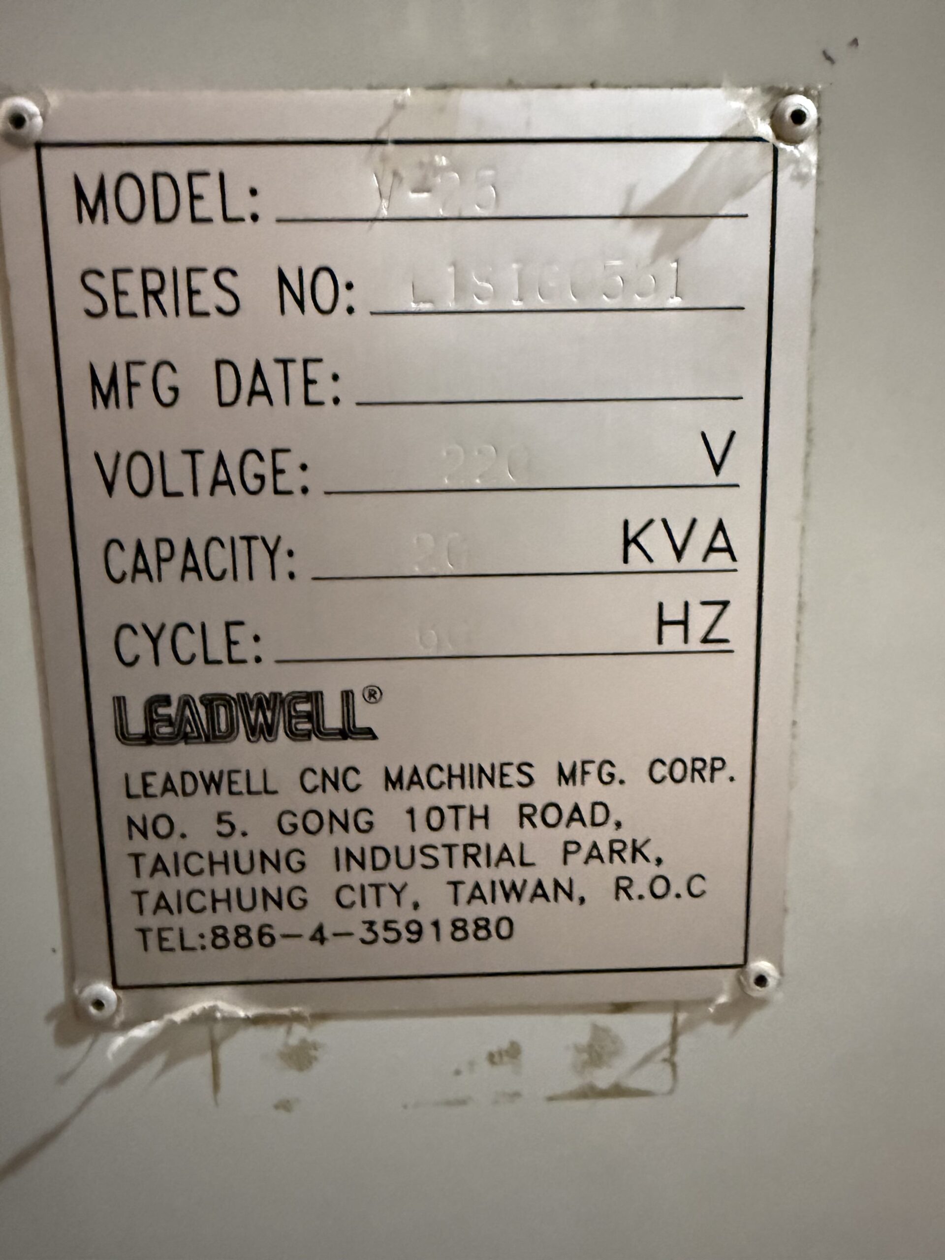 LEADWELL V-25 VERTICAL MACHINING CENTER